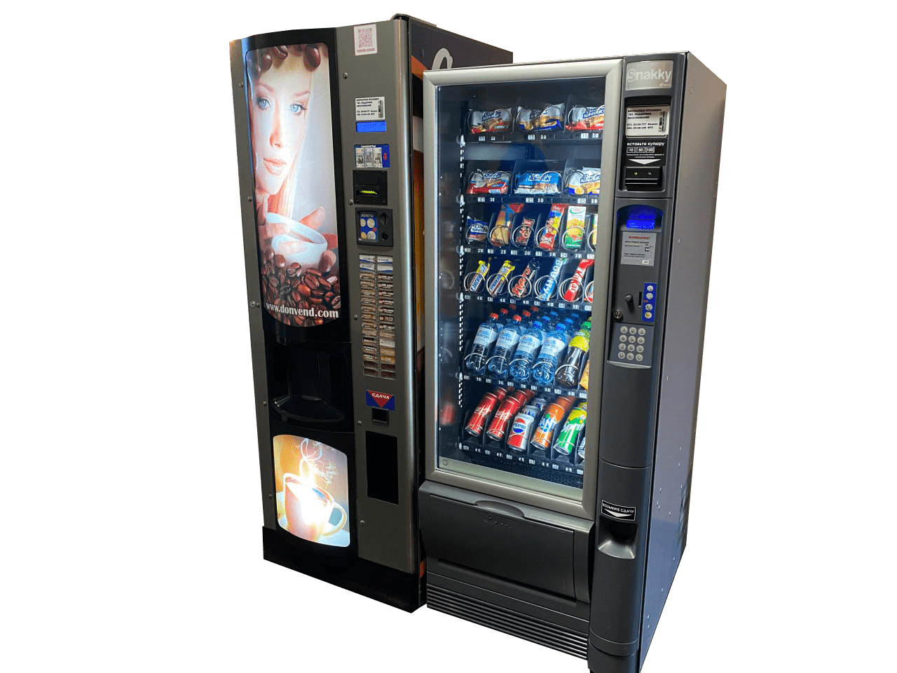 Минибары – связка снекового автомата с кофематом. В результате такого тандема покупатель может с чашкой ароматного горячего напитка купить круасан либо шоколадный батончик. Минибары позволяют зимой согреться горячим кофе, а летом освежиться прохладительным напитком. Часто после установки кофемата возникает потребность и в снековом аппарате. Данная связка автоматов очень популярна. Минибар может также быть организован парой снекового аппарата с кофе-поинтом.